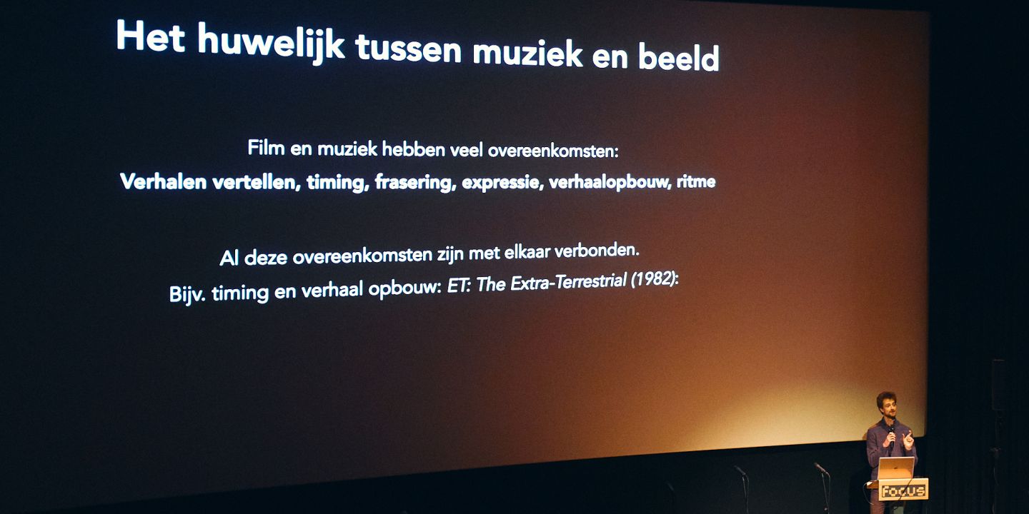 Aan de hand van zijn eigen werk vertelt muziekdocent en filmcomponist Tobias Wenting over de totstandkoming van een filmscore. Hoe en waar begin je, hoe interpreteer je beeld en verhaal en wanneer is het klaar? Wat is de functie van muziek? In deze introductie gaat hij zowel in gesprek met zijn eigen studenten als met het publiek.