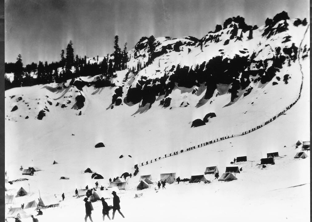 De Little Tramp (Charles Chaplin) zoekt zijn geluk in de goudmijnen van Klondike. Als een zware sneeuwstorm dreigt, zoekt hij onderdak en schuilt met de crimineel Black Larson en de goedgezinde Big Jim McKay in een verlaten hut. De mannen krijgen honger en zijn gedwongen te eten wat er te eten valt. Terwijl Chaplin aan zijn schoen kauwt, overweegt iemand anders een moord te plegen om zijn honger te stillen.