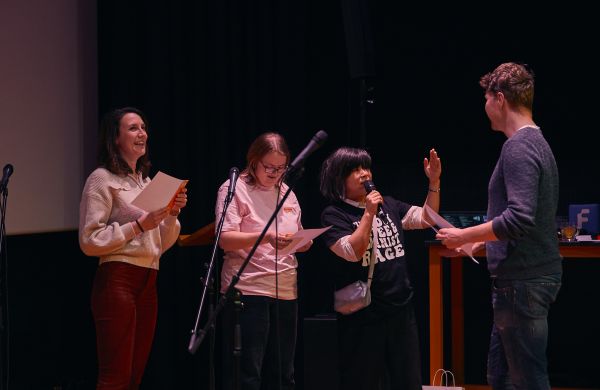 In Focus stond de avond dit keer in het teken van activisme. Er werd (protest)gezongen, gedanst, gelachen, gebreid, gehaakt, geluisterd, gecomponeerd, gequizd en natuurlijk genoten van film! Veel dank aan iedereen die er was en aan iedereen die een bijdrage leverde aan ons veelzijdige programma. We hebben een geweldige avond gehad, volgend jaar weer?